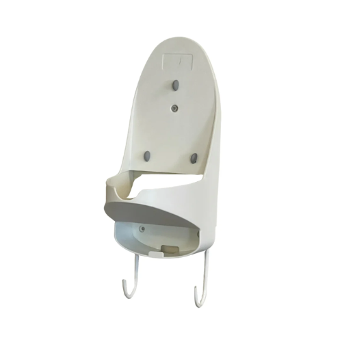 White iron organizer caddy designed for hotel rooms to neatly store and present the iron and iron board in a compact, organized footprint. Keeps the ironing setup off the floor and reduces housekeeping time spent repositioning equipment between guest stays. A simple but practical room accessory that contributes to a tidy, professional room presentation.